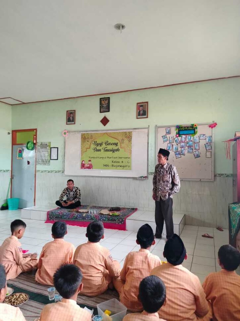 Jika pada umumnya beberapa kegiatan madrasah terfokus pada pengembangan IQ dan EQ, maka paguyuban kelas IV C berkoordinasi dengan madrasah membuat kegiatan Kelas Inspirasi untuk mengembangkan SQ siswa, melalui kegiatan ngaji bareng, juga pemberian tausiyah atau kuliah singkat keagamaan. Kegiatan yang berlangsung pada hari ini, Rabu (23/2) dilaksanakan setelah Kegiatan Belajar Mengajar (KBM) selesai. Anak-anak didampingi oleh wali kelas dan wali murid paguyuban duduk dan menyimak dengan antusias tausiyah yang diberikan oleh Ustadz Zainudin. Diharapkan kedepannya kegiatan ini mampu meningkatkan Spiritual Intelligence atau kecerdasan rohaniah para peserta didik.