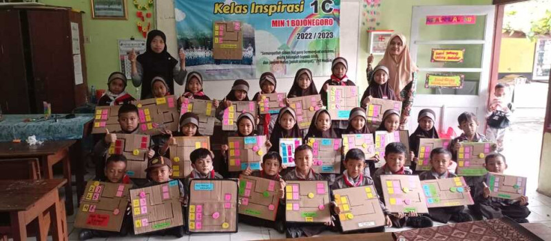 Prinsip madrasah yang berupaya membudayakan para siswa untuk sadar lingkungan dan berbudaya lingkungan sepertinya disambut baik oleh para warga madrasah. Hal ini terbukti dengan adanya kegiatan kelas Inspirasi I C yang memanfaatkan limbah barang bekas menjadi sebuah Alat Peraga Edukatif (APE). Alat peraga edukatif yang dibuat saat kelas inspirasi, Sabtu (4/2) kali ini berbahan dasar utama kardus bekas. Kardus bekas beserta bahan dasar lainnya dibentuk sedemikian rupa untuk menjadi alat peraga edukatif berhitung penjumlahan ke bawah.