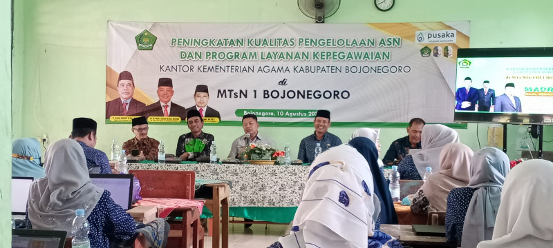 Bojonegoro, (10/8) – Dalam upaya meningkatkan kualitas pengelolaan Aparatur Sipil Negara (ASN) dan program layanan kepegawaian, Kementerian Agama Kabupaten Bojonegoro menggelar acara pelatihan yang diikuti oleh MIN 1 Bojonegoro, MIN 2 Bojonegoro, dan MTsN 1 Bojonegoro. Acara yang berlangsung di MTsN 1 Bojonegoro ini dihadiri oleh berbagai pejabat dan staf dari instansi terkait, serta para peserta dari ketiga madrasah tersebut.